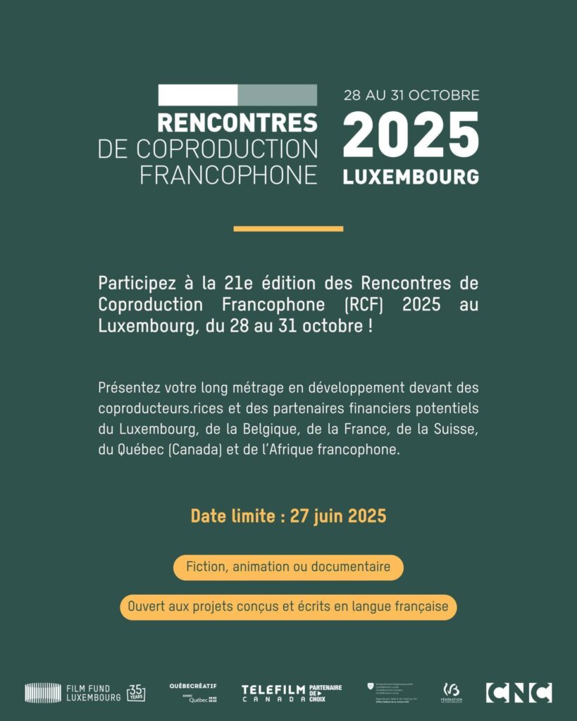 Le Film Fund Luxembourg a annoncé l’organisation de la 21e édition des Rencontres de Coproduction Francophone (RCF), qui se tiendra du 28 au 31 octobre 2025 au Luxembourg. L’événement s’inscrit comme un rendez-vous incontournable pour les professionnels de l’audiovisuel francophone en quête de collaborations et de financements internationaux.