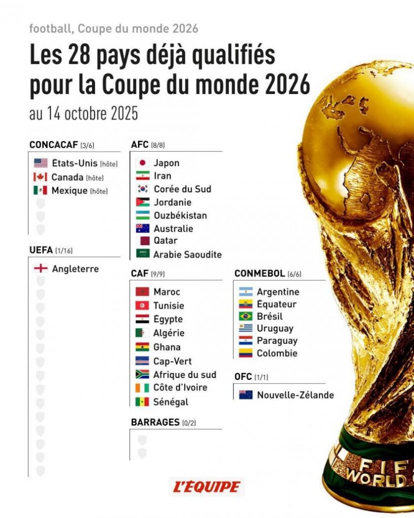 Coupe du Monde 2026: 28 nations déjà qualifiées pour la plus grande messe du football